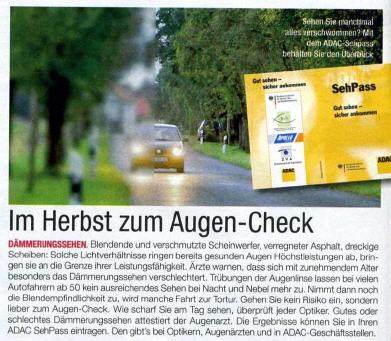 Der ADAC rät im Herbst, der "dunklen Jahreszeit", zum Augentest! Sie erhalten den Sehpass bei uns!